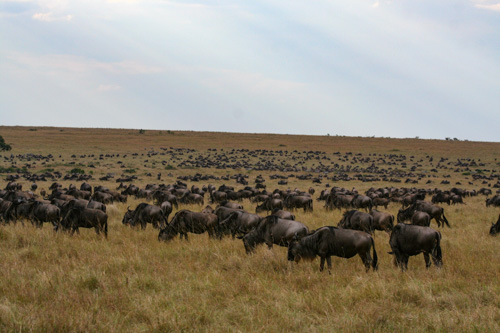 Heute wollen wir versuchen die bekannten Bilder der Migration aus den Dokumentationen im Fernsehen live zu erleben. Jeder hat die Bilder von den Gnu-Herden vor Augen, die versuchen den Mara-Fluss zu durchqueren und dabei von Krokodilen angegriffen werden.