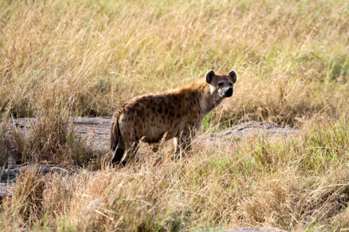 Später finden wir eine Gruppe Hyänen. Sie sind auf der Suche nach etwas Fressbaren und laufen direkt an unseren Autos vorbei.