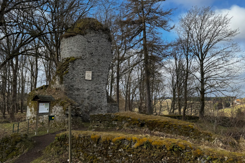 Unser erstes Ziel ist die Ruine Königsburg (HWN041). Nach knapp 700 Metern ist das Ziel schon erreicht. Die wenigen Höhenmeter hoch zur Ruine sind auch schon fast die einzigen Höhenmeter auf der ganzen heutigen Tour. Die kleine Burg wurde im 13./14. Jahrhundert genutzt. Seit Beginn des 16. Jahrhunderts war diese bereits nicht mehr bewohnt.