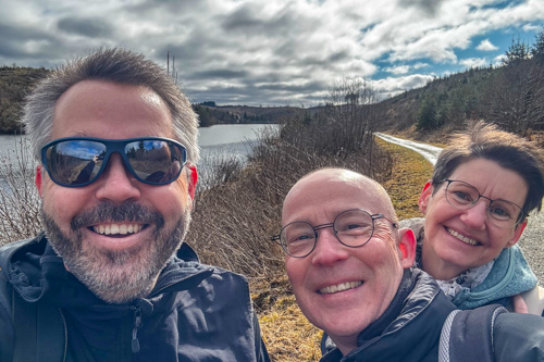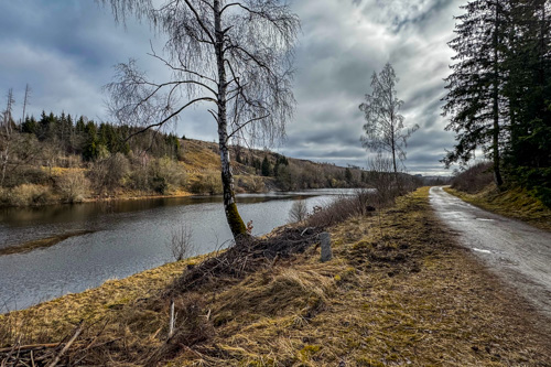 In der Ferne können wir den Wurmberg sehen. Seine Hänge sind mit leichtem Neuschnee überzogen. Wir setzen unseren Weg fort und umrunden nun die Talsperre Königshütte. Von nun an gehts nur noch flach auf breiten Wegen weiter.