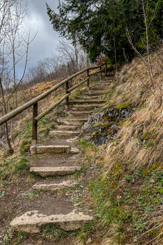 Zurück in Königshütte biegen wir nicht in Richtung Parkplatz ab, sondern machen noch einen Abstecher durch den Ort an das andere Ortsende. Dort wartet die dritte Stempelstelle dieser Runde auf uns. Mittlerweile laufen uns auch einige Wanderer mehr über den Weg. Nach knapp 9 Kilometern erreichen wir den Königshütter Wasserfall (HWN040). Nach dem wir den Stempel ins Stempelheft gedrückt haben, laufen wir die letzten Kilometer zurück zum Parkplatz.