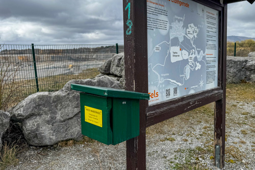 Jetzt wollen wir noch 2 weitere Stempel der Region mit kurzen Ausflügen mitnehmen. Deshalb heißt es mit dem Auto die kurze Strecke zurück nach Elbingerode zu fahren. Wir parken unser Auto am Ortsrand. Von hier aus sind es nur rund 500 Meter zur Stempelstelle Tagebau Felswerke (HWN039). An der Stempelstelle hat man einen prima Blick über den gesamten Kalkstein-Tagebau. Danach gehts zurück zum Auto.