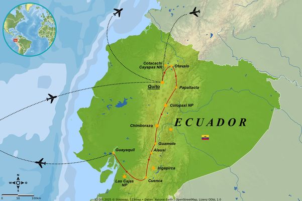 Ecuador, das vielfältigste Land Südamerikas. Hier erleben wir einmalige Bergpanoramen, ursprüngliche Indigenakulturen, hübsche Kolonialstädtchen und dichten Regenwald auf engstem Raum.