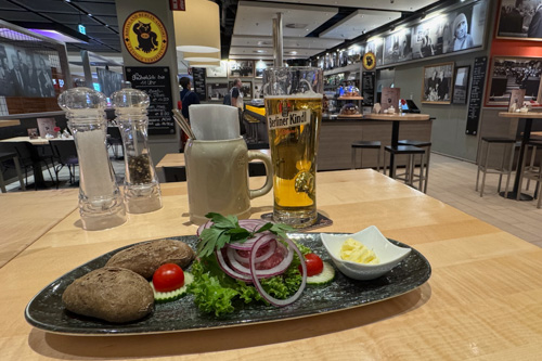 Nun geht’s zu „Ständigen Vertretung“ frühstücken. Mittlerweile hat sich das zu einer kleinen Tradition entwickelt. Mett-Happen zum Frühstück und ein Bier (immerhin war ich ja noch nicht im Bett) sind angesagt.