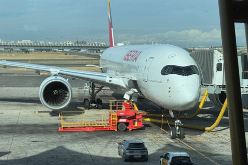 11:10 Uhr beginnt das Boarding. Der Abflug mit dem A350-900 von Iberia nach Quito ist für 12:00 Uhr geplant.
