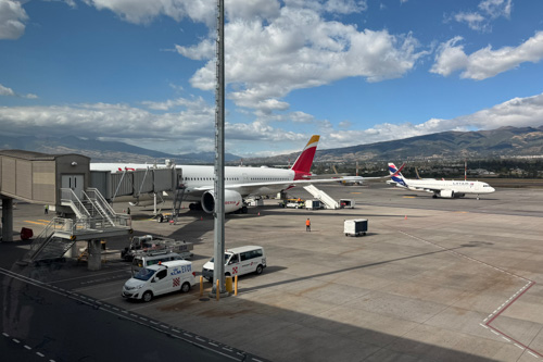 Nun kann ich bis zum Checkin eine Stunde am Flughafen rumlungern. Gegen 3:00 Uhr öffnen die Schalter. Jetzt geht alles sehr schnell. Der Checkin bis Quito ist ruckzuck erledigt. Anschließend bin ich in fünf Minuten durch die Sicherheitskontrollen durch. Ist das der Vorteil der frühen Flüge?