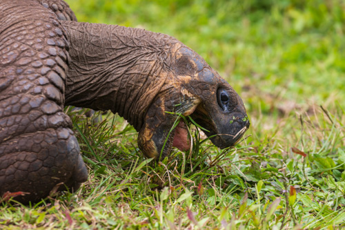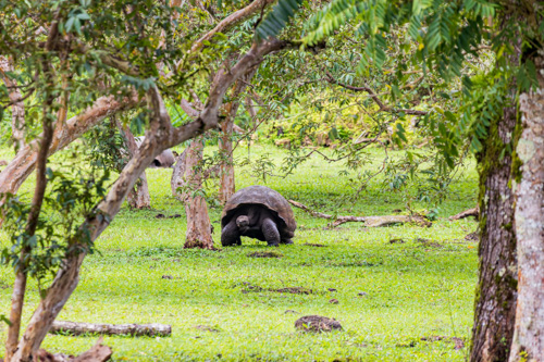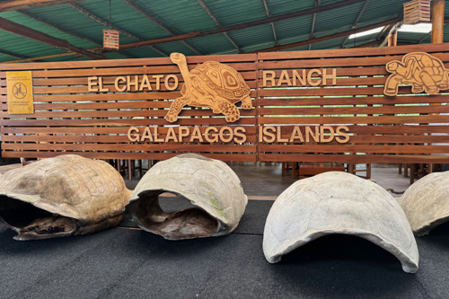 Danach fahren wir weiter und kommen in den Ort Santa Rosa. Unseren nächsten Halt machen wir an der El Chato Ranch. In dem Naturreservat leben viele Galapagos Riesenschildkröten. Schon auf dem Parkplatz begegnen uns die ersten Exemplare. Selbstverständlich müssen ersten Fotos noch vor dem Mittagessen geschossen werden. Bevor wir hier aber auf Erkundungstour gehen, ist im angeschlossenen Restaurant erstmal das Mittagessen geplant. Heute gibt es gegrillten Thunfisch.