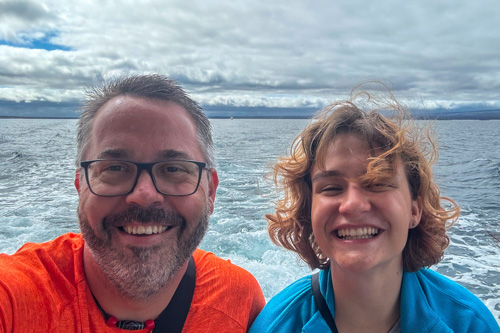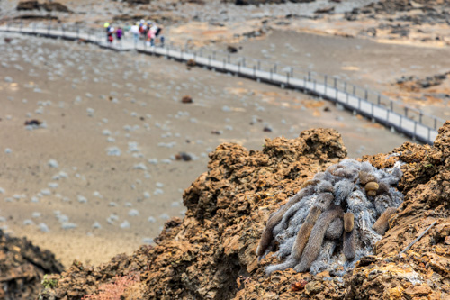 Auch heute morgen ist es wieder komplett bewölkt. Wie fast immer braucht die Sonne etwas, um hervorzukommen. Wir fahren an der Vogelinsel „Daphne Major“ vorbei. An ihrer steinigen Küste können wir erste Meeresvögel beobachten. Danach geht’s weiter raus aufs Meer. Die See wird etwas rauer.