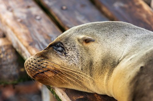 An einem Strandabschnitt finden wir noch einige Seelöwen dösend im Sand.