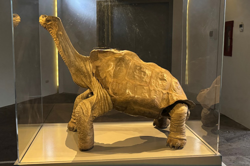 In der Station gibt es eine besondere Ausstellung. Lange lebte hier „Lonesome George“. Er war vermutlich der letzte seiner Art. George stammte von der Insel Pinta, wo er 1971 entdeckt wurde, und gehört somit zur Unterart der „Pinta-Riesenschildkröten“. Am 24. Juni 2012 verstarb George als letzter seiner Art. Er wurde ca. 100 Jahre. George wurde vom „American Museum of Natural History“ einbalsamiert. Nachdem er lange in New York ausgestellt war, kehrte er 2017 auf die Galapagos Inseln zurück. Seitdem ist er hier in einem extra für ihn errichteten Gebäude ausgestellt.